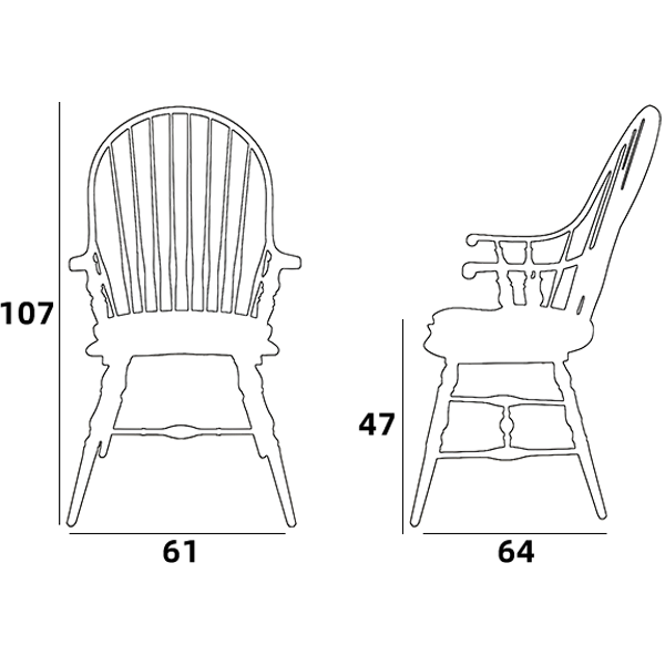 The Windsor armchair (pictured here is the classic “hoop-back Windsor chair”) dates back to late 17th-century England, where it was crafted by rural artisans for outdoor work and domestic use; it takes its name from the Windsor region, where it was mass-produced. By the mid-to-late 18th century, the structure and form of the Windsor chair had largely taken shape. Evolving from its initial rustic and utilitarian design, it transformed into an armchair that combined comfort with decorative appeal, becoming a representative piece of furniture around the time of the American Revolution. Its simple structure, natural aesthetic, and ergonomic principles profoundly influenced 20th-century Scandinavian design, Modernism, and American vintage styles.